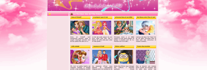 Jouez aux meilleurs jeux de filles sur www.fillesjeux.com, vous y trouverez plusieurs; habillage, maquillage, coloriage, cuisine et bien d'autres ,des centaines des jeux vous attendent ,et de nouveaux sont ajoutés chaque jour, amusez vous bien