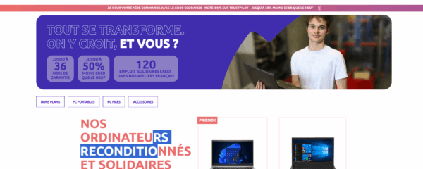 Ecodair, l’informatique durable et solidaire vous propose un vaste choix de PC portables, ordinateurs fixes…